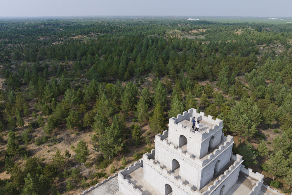 陕西榆林毛乌素治沙造林基地内建设的人工林。新华社发