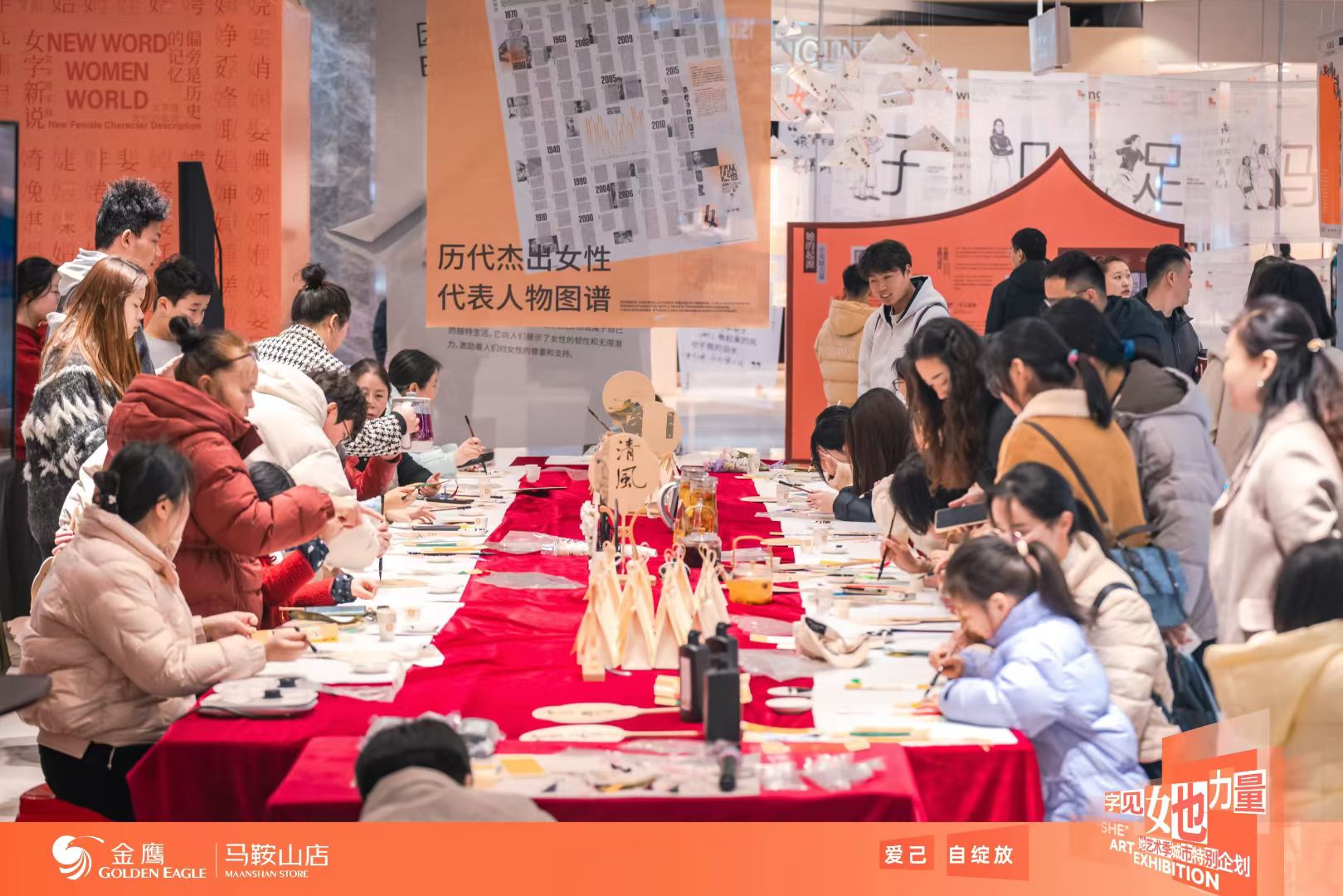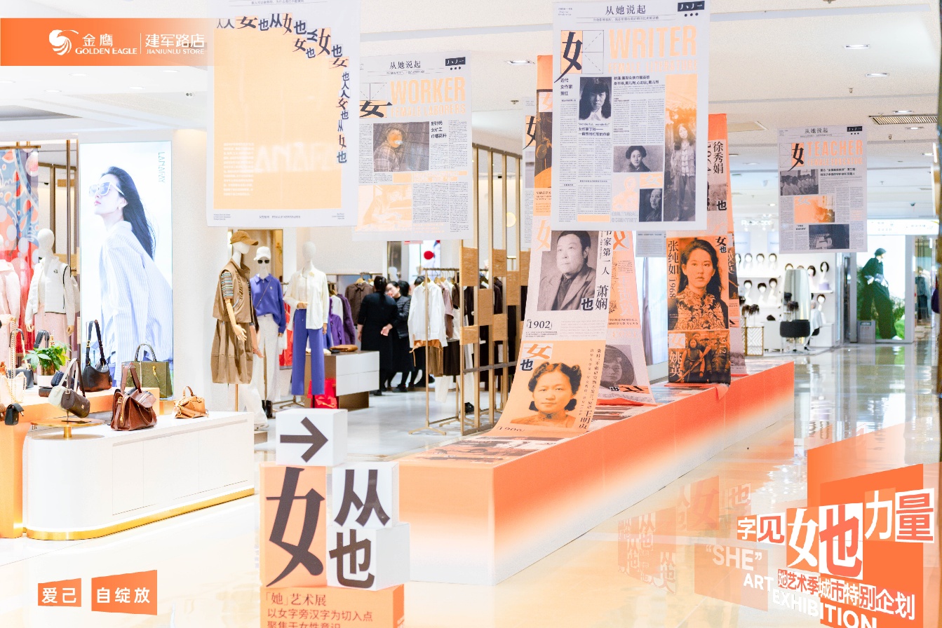 春启新章,恰逢女神节消费热潮,金鹰商贸深度挖掘“她经济”精神内核,于三八档期重磅推出「字见她力量」全国五城艺术展城市特别企划。活动携手新锐艺术家王洋洋(从女也团队),以汉字文化为媒、在地文脉为魂,在南京、扬州、徐州、马鞍山、盐城同步启幕沉浸式艺术展,并联动全业态品牌打造多元文化体验,实现艺术赋能商业、文化激活消费的深度融合,斩获开春消费市场首波业绩爆发,为商业体探索“她经济”新玩法树立标杆。