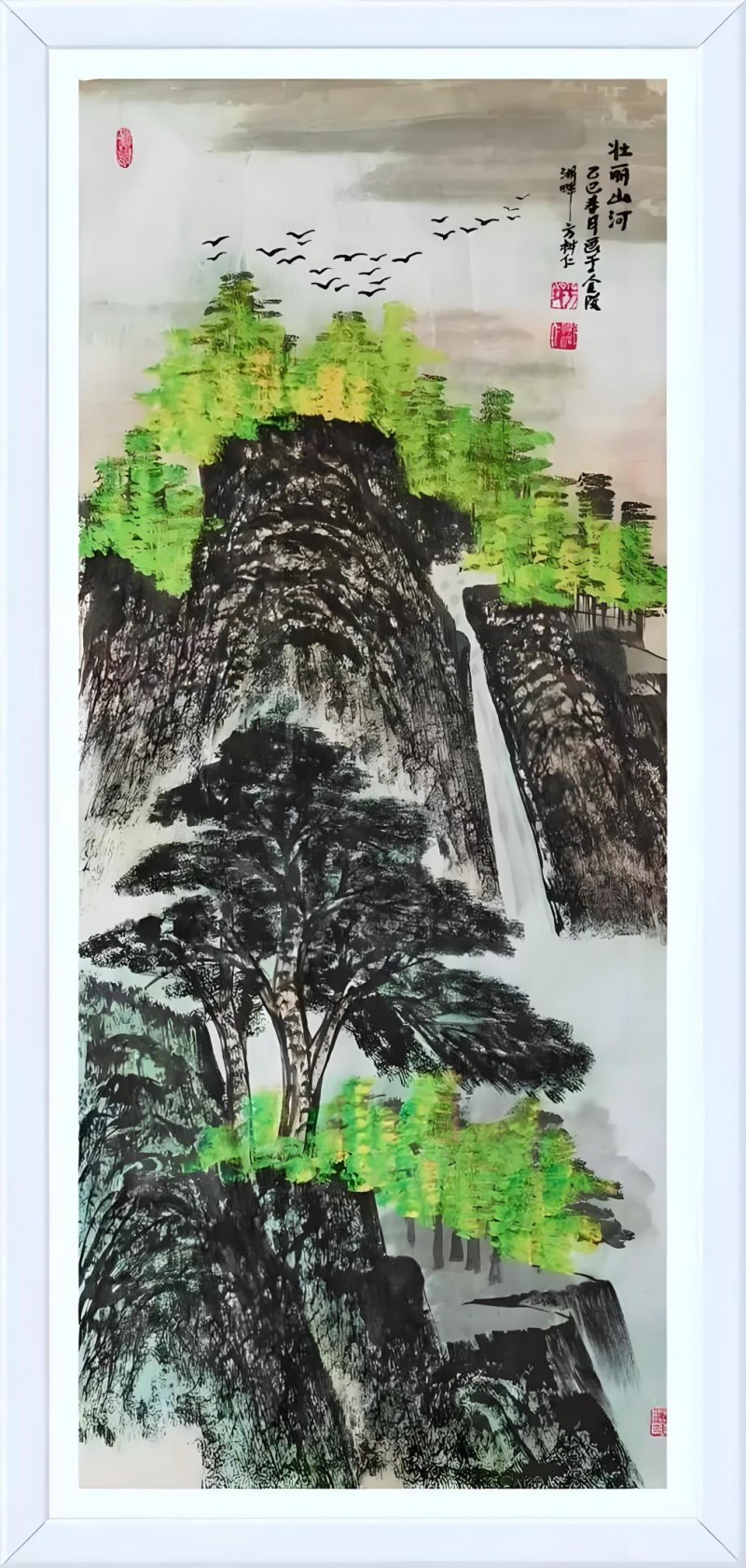 中国山水南北分野鲜明:南派温润灵秀、侧重阴柔之美,北派雄浑壮阔、侧重阳刚之美,审美壁垒导致创作风格单一。方树仁生于江南、遍历北方名山大川,故乡灌云的山水风光为其提供了丰富创作灵感,他打破南北壁垒,将二者深度融合,形成 “南秀北雄、刚柔并济” 的意境,暗合 “阴阳平衡” 哲思。