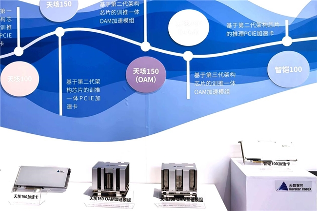 本次 AWE,天数智芯重磅展出天垓、智铠、彤央三大核心产品系列,构建起云边端一体化的算力矩阵,精准覆盖 AI 模型训练、推理、边端部署全场景需求。