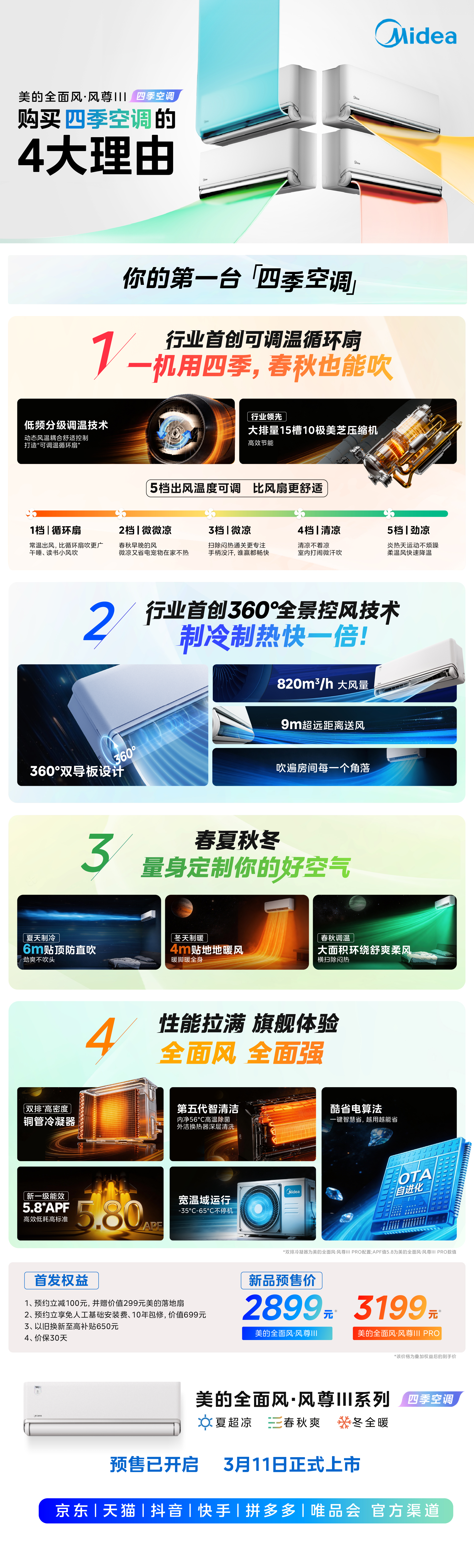 从夏日的全域速冷,到冬日的足底暖流,再到春秋的除闷焕新,美的风尊三代以航天同源技术为基石,通过360°全景控风与低频分级调温两大核心科技,彻底打破了季节对空调使用的限制。它不仅是一台性能旗舰,更是护航家庭365天全季候舒适生活的可靠伴侣。