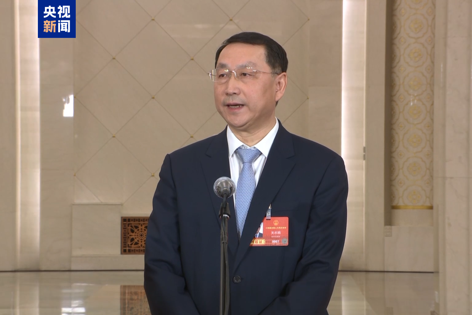 3月12日,十四届全国人大四次会议第三场“部长通道”在人民大会堂举行,自然资源部部长关志鸥接受记者采访。