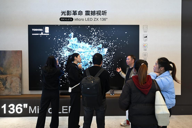 值得关注的是,东芝电视在此次AWE还带来了136寸Micro LED ZX,采用像素级自发光技术,色域表现登顶行业巅峰,在0.78mm微间距与低于0.05mm拼接平整度的顶尖工艺加持下,为用户开启震撼视听新境界。