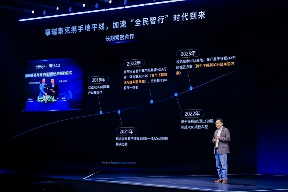 自2019年双方战略签约以来,团队紧密合作:2021年联合发布首款前视一体机产品;2022年共同推出行业首个下探至15万级车型的量产高速NOA行泊一体方案,以及行业首个8M前视一体机;2025年,基于征程6M打造的ADC25“智享全民版”城区NOA顺利量产。这一系列成果,加速了全民智行时代的到来。