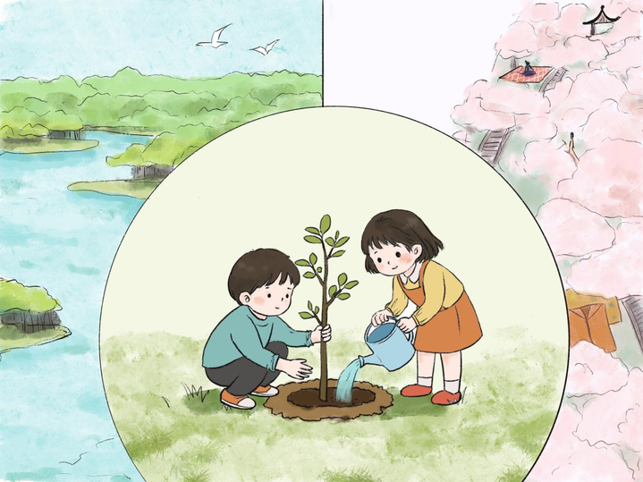 最是一年春好处,“植”此青绿不负春。如今的华夏大地春意渐浓,正是植树的好时节。把握重要节点,深入开展全民义务植树活动,广泛普及爱绿、植绿、护绿理念正当其时。要坚持线上和线下相结合,积极拓展群众参与渠道,广泛动员干部、群众同心协力,踊跃参与造林绿化、抚育管护、认种认养、捐资捐物、志愿服务等活动,让植树成为一种生活方式,不断增强“义务植树是全民行动,要一代接着一代干下去”的思想自觉和行动自觉。深化“草木皆生命,枝叶总关情”的共识,像保护眼睛一样保护生态环境,自觉爱护每一株树木、珍惜每一片绿地,让爱绿、护绿成为一种自觉选择。