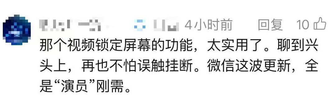 如何让正在兴头上的视频唠嗑,不被手滑强行“剧终”?有些人视频聊着聊着就不见了,可能是误触点了挂断。现在,微信视频时点击右上角🔒图标,可锁定屏幕。该功能正在逐步放量中。