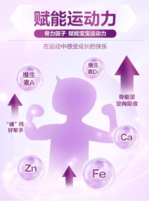 在配方方面,君乐宝至臻A2奶牛奶粉也不含糊,从骨骼力、自护力、认知力、吸收力、“睛”彩力这5大方面关注宝宝健康成长。其中骨骼力方面,添加了OPO结构油脂、酪蛋白磷酸肽CPP与钙,三种成分合理配比;自护力方面,含有六大HMOs、活性蛋白OPN,添加五种核苷酸,协同支持宝宝自身防御力;同时,还添加DHA、ARA、叶黄素、硒、维生素A等多种关键营养素,配方均衡,关注宝宝脑体双优[4]!