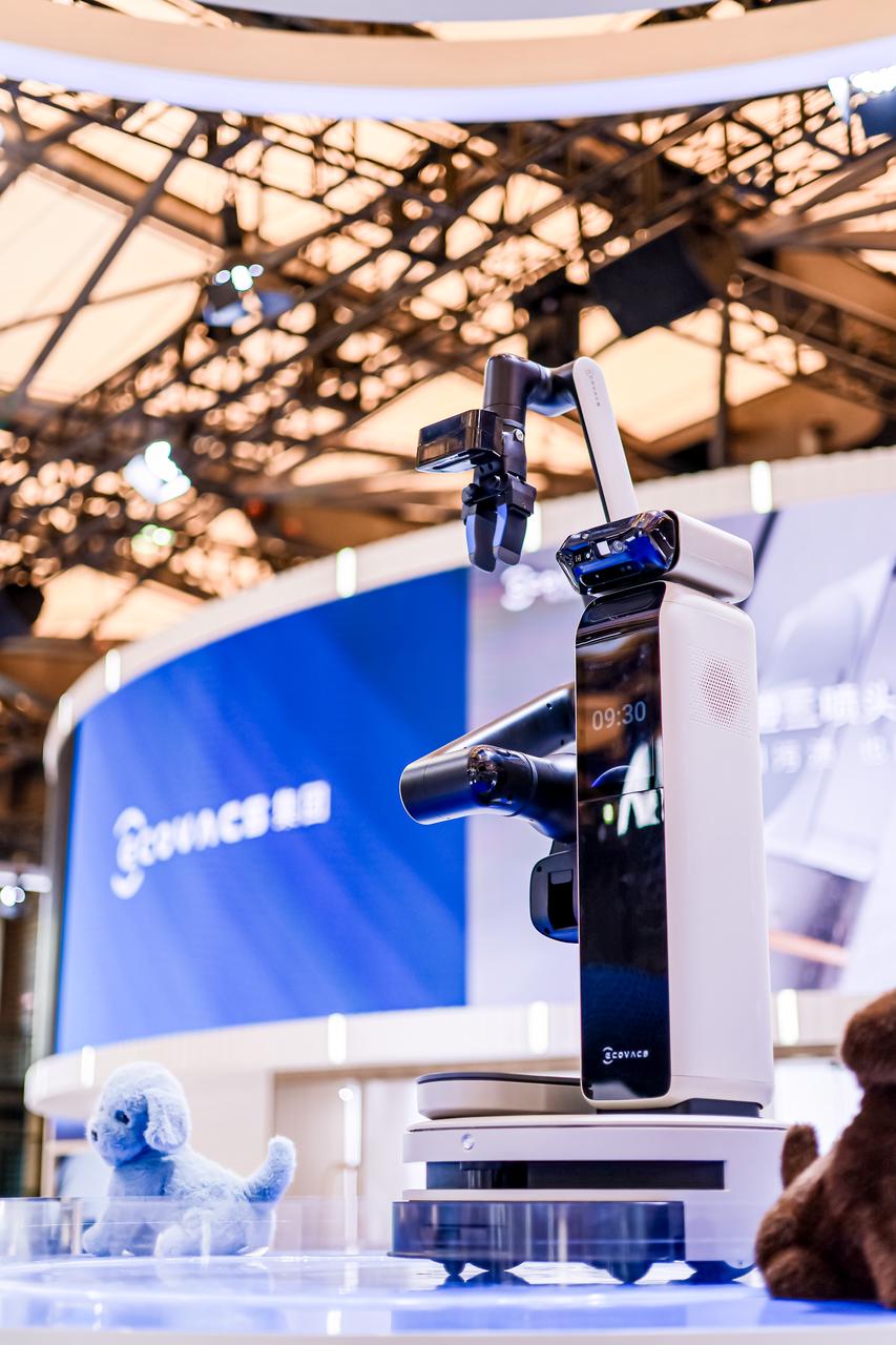 具身智能的核心,在于让AI拥有物理实体的承载,使其能够感知复杂的现实世界并进行类人、类生物的精准交互。在科沃斯展台最核心的具身智能展演区,前沿产品清晰勾勒出服务机器人从“工具”到“管家”再到“伴侣”的演进路径。