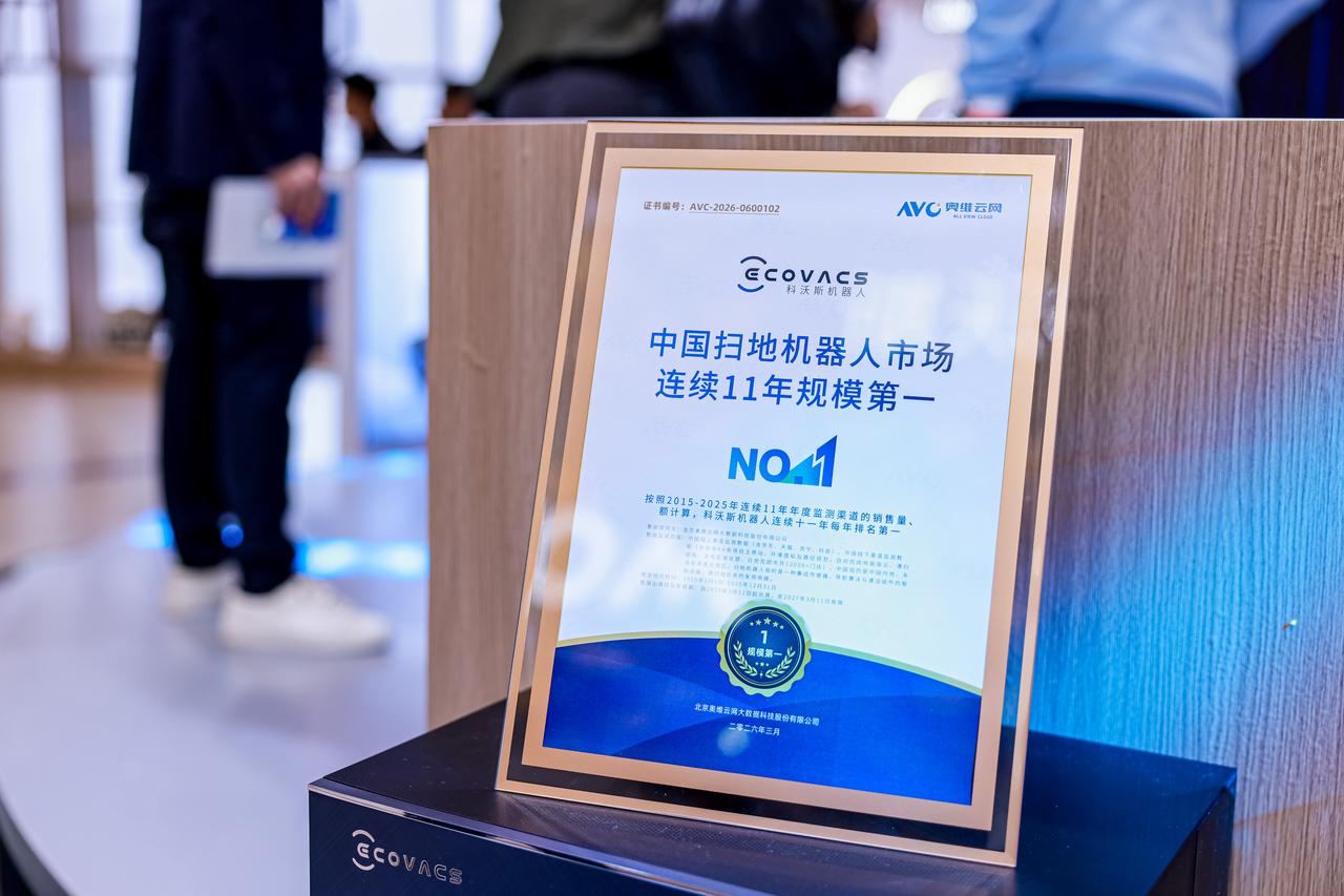 市场数据是对技术转化能力的最佳背书。在本届AWE现场,权威调研机构奥维云网(AVC)与国际数据公司(IDC)为科沃斯颁发了多项重磅认证。数据清晰印证了其市场领先地位:科沃斯实现了中国扫地机器人连续11年规模第一、中国活水滚筒扫地机器人规模第一、中国擦窗机器人连续5年规模第一,以及擦窗机器人全球市场连续3年第一。这些全面领跑的成绩,是全球数千万家庭对科沃斯产品力的最高认可,和对科沃斯技术转化能力的最真实反馈。