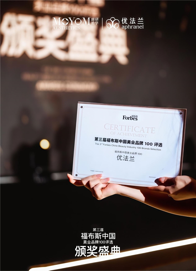 在第三届福布斯中国美业品牌100评选中,摩漾生物旗下医美品牌Aphranel优法兰凭借在产品研发理念、材料技术创新及行业规范实践等方面的深厚积淀,成功登榜。本次评选从品牌市场潜力、产品与服务、商业价值、消费者心智占领及持续发展性等多个维度,系统性评估了中国美业品牌的综合实力。Aphranel优法兰作为"CaHA再生材料品牌”的独特代表跻身其中,标志着其回归医疗本质、坚持产品力至上的发展路径获得了权威机构的高度认可。