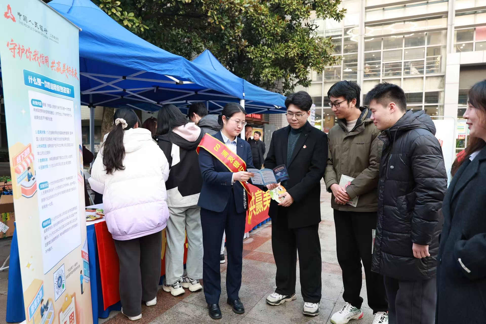 为提升本次教育普及实效,本次进校活动还在南邮第二食堂门口现场设置了咨询展台和互动打卡点。通过“学习征信知识、向幸福出圈”的套圈打卡游戏,让在校师生们更直观地了解征信知识;同时现场征信志愿者们与师生面对面交流,耐心解答关于信用卡使用、助学贷款还款、信用逾期修复等高频问题。同学们积极参与互动,纷纷表示:“这次活动让我真正明白了征信的重要性,以后会更加注意维护自己的信用记录!”活动累计发放宣传折页400余份,覆盖师生300余人次,有效打通了征信知识普及的“最后一公里”