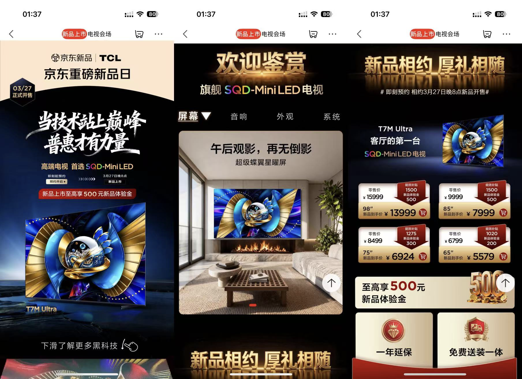 如果你正打算换电视,建议稍微等等。据了解,TCL将在3月17日举办春季新品发布会,届时会带来新一代SQD-Mini LED产品Q9M Pro、T7M Pro、T7M Ultra,甚至还有更多“超额惊喜”。目前这几款产品已经在主流电商平台开启预约,从目前释出的配置和价格信息来看,TCL是要把机皇X11L的顶尖SQD-Mini LED技术下沉到更多主流价位段,让更多用户都能体验到「机皇级」画质,那2026也势必会成为SQD-Mini LED电视的普及元年。TCL作为全球电视行业的技术领跑者,继开创了Mini LED技术、QLED量子点技术、QD-Mini LED技术、第四代液晶电视后,如今再次首创最强SQD-Mini LED画质技术并让其实现普及,就凭这份深耕技术创新的韧劲儿,很难不期待这次的新品!