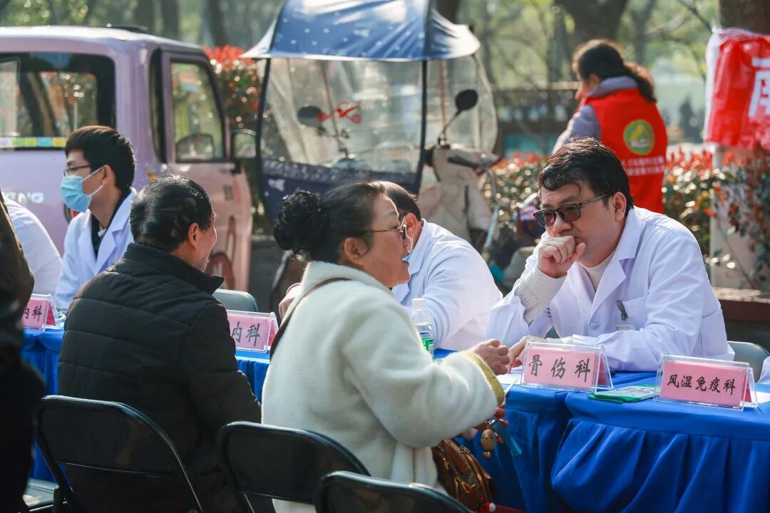 本次活动阵容强大,医院集结了肾内科、风湿免疫科、内分泌科、心血管内科、骨科、普外科、泌尿外科、中医内科等16个临床科室的骨干医师,组成专科团队来到现场。义诊设置了三大服务板块,为居民提供全方位、一站式的健康关怀。