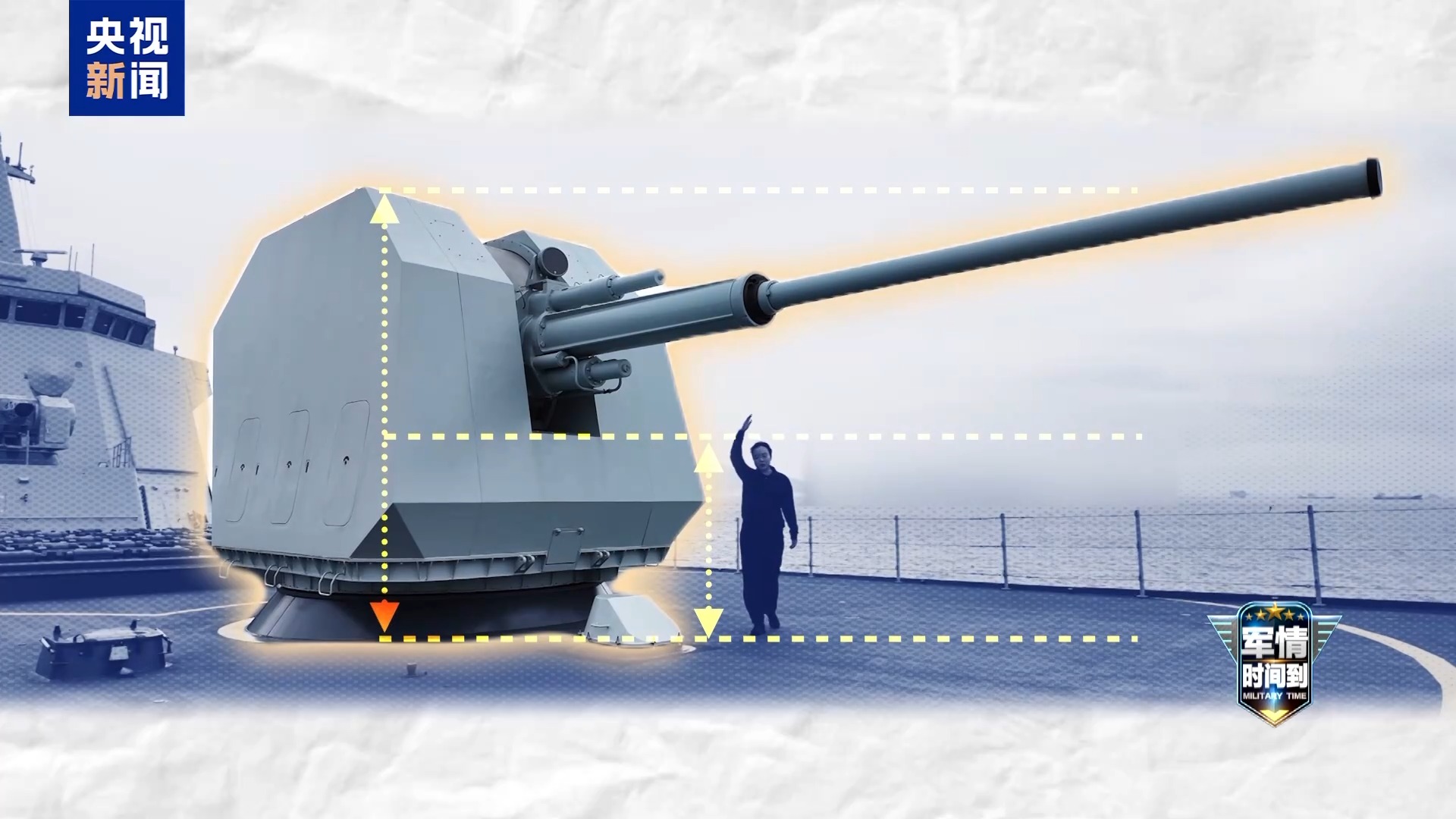 总台记者 李笑琪:这里就是主炮了,它比1米65的我还要高一些,像这样130毫米口径的主炮可以实现有效的毁伤打击。