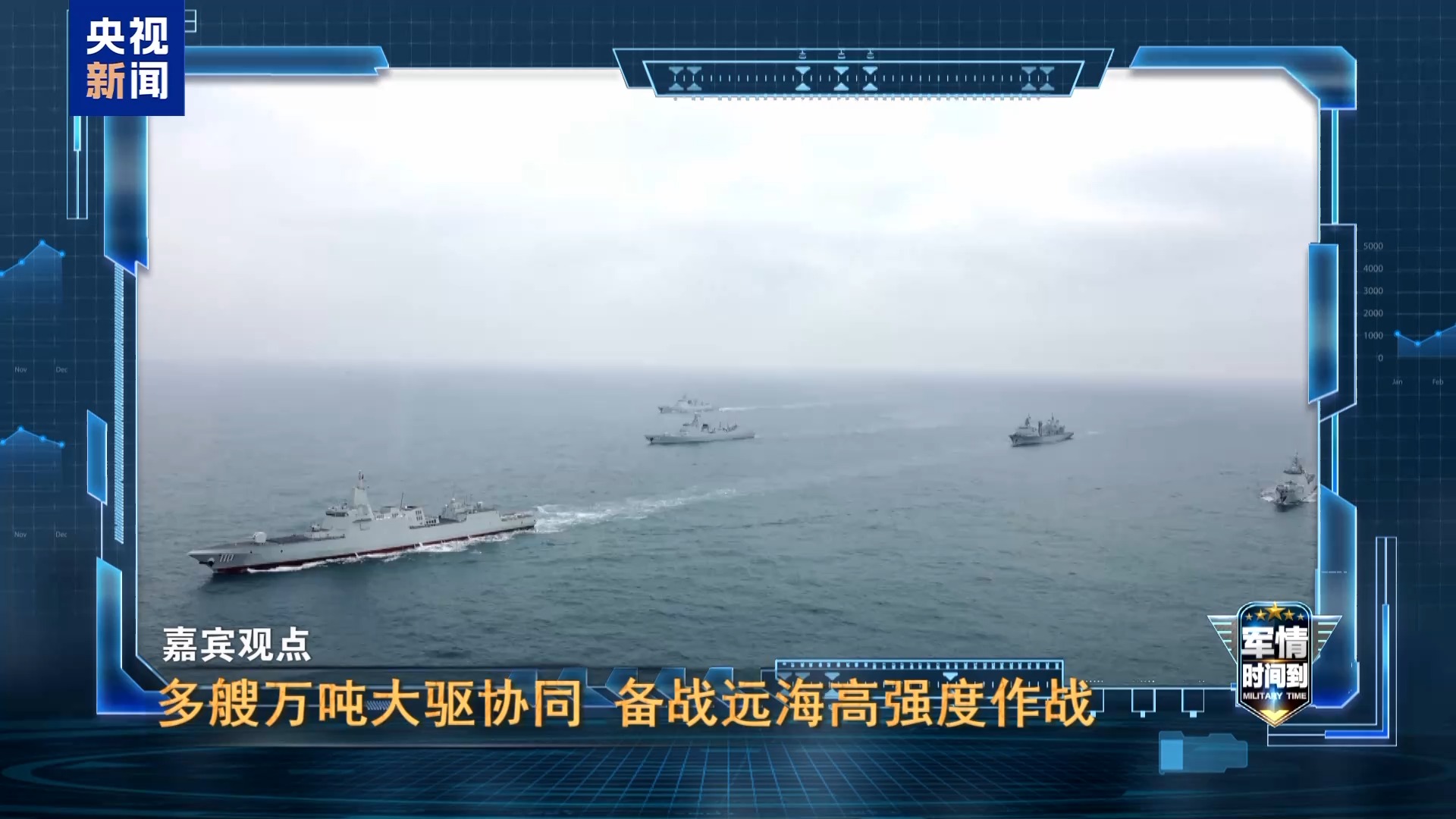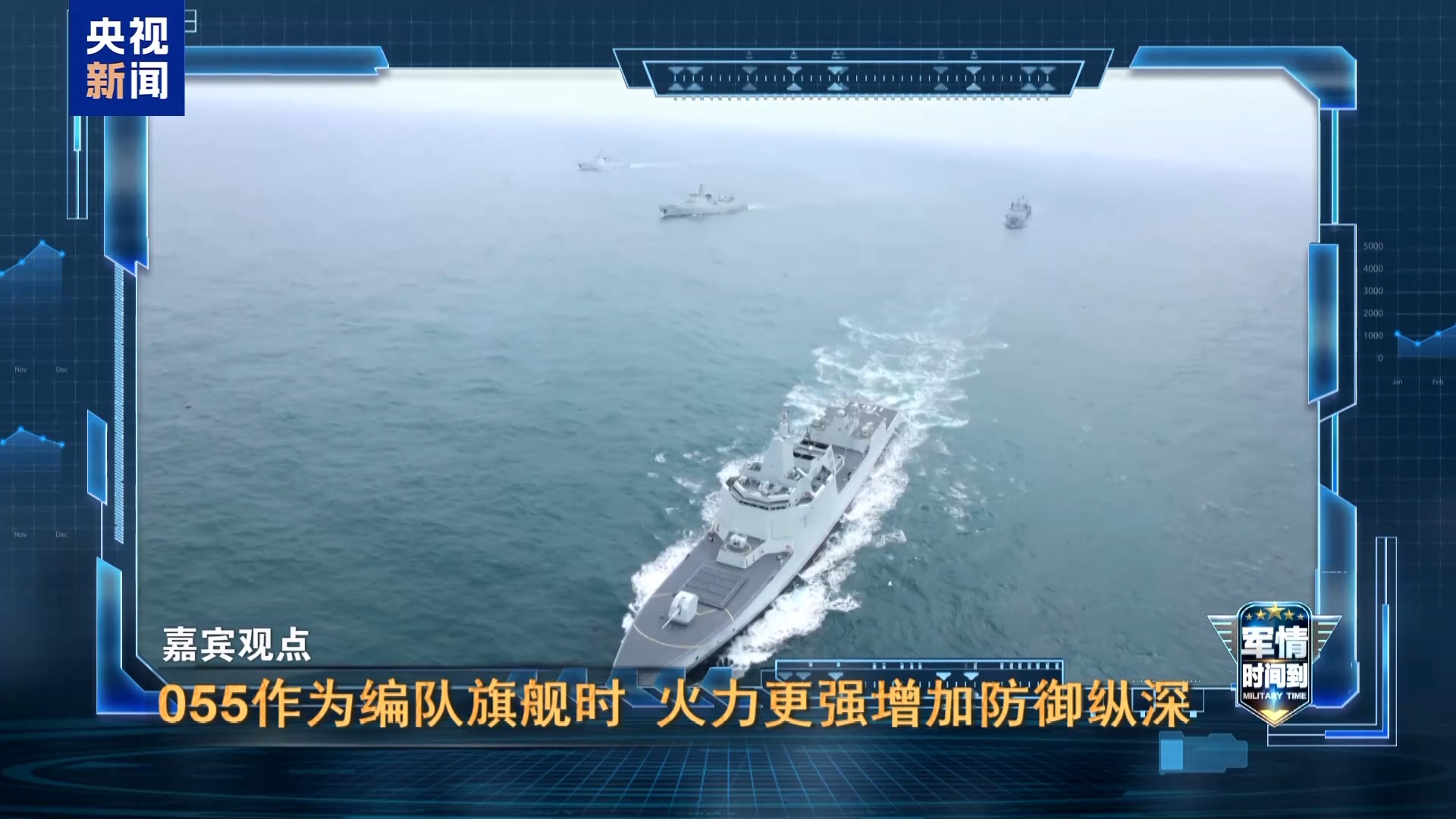 军事评论员 曹卫东:如果我们将来有两艘航空母舰在一起出动的时候,组成了一个双航母编队的时候,可能就需要的不是一艘两艘的055型的导弹驱逐舰,而是三艘四艘的055型的导弹驱逐舰来作为配属的舰只来使用。所以,四艘舰的同框预示了在将来它们不但会同框,还会同训,这样的情景实际上是为双航母编队来做准备的。再有一点,如果我们在战争力度比较强的情况下,我们用更多的055型的导弹驱逐舰来共同完成对海打击或者对陆打击的任务,那我们的能力也会是更强的。