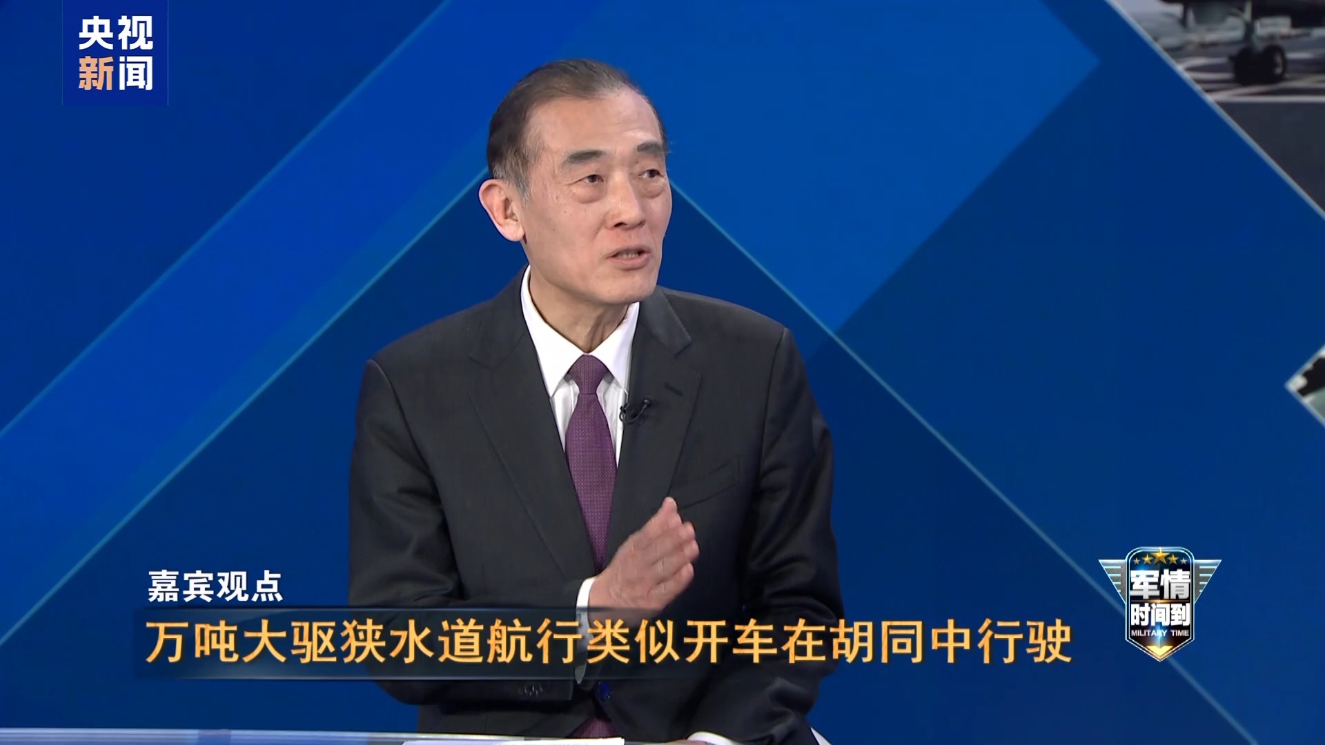 军事评论员 曹卫东:这是个基础课目,但又是一个难度很大的课目!因为055型的导弹驱逐舰是万吨级的,它的长度是180米,宽度20米,相当于四个游泳池的长度。所以,在狭窄的航道里边航行,就相当于一辆车在一个胡同里。因此,你既要躲避其他的障碍物,还要保证自己的安全。既是基本的课目,同时也体现了新装备入役以后,官兵驾驭掌握这样新装备的能力。