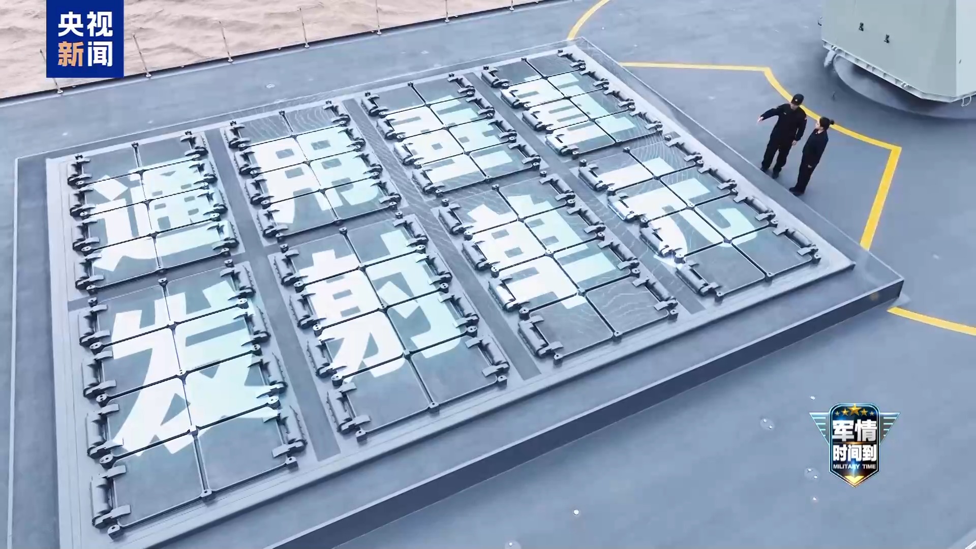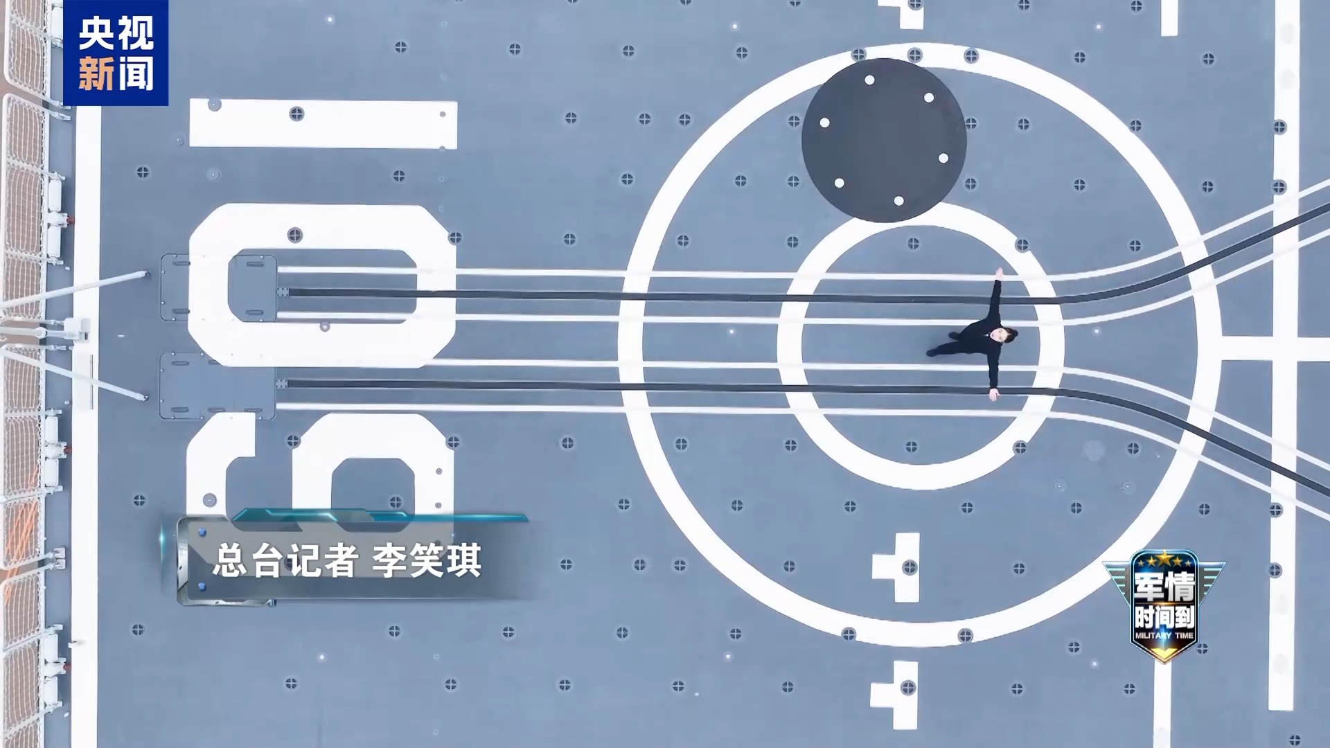 总台记者 李笑琪:接下来我们就要来到飞行甲板的位置,会发现这里很宽阔,那就意味着可以起降更大型的直升机。身后有两个大门,就代表可以同时搭载两架直升机。