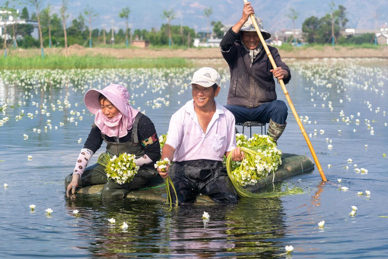 大地回春时节,云南大理的水中“精灵”——海菜花也迎来食用佳季。大理州洱源县右所镇宣传委员张晓琼介绍,眼下,种植户正忙于采摘海菜花,将这份大理最洁净的春日滋味送至千家万户。