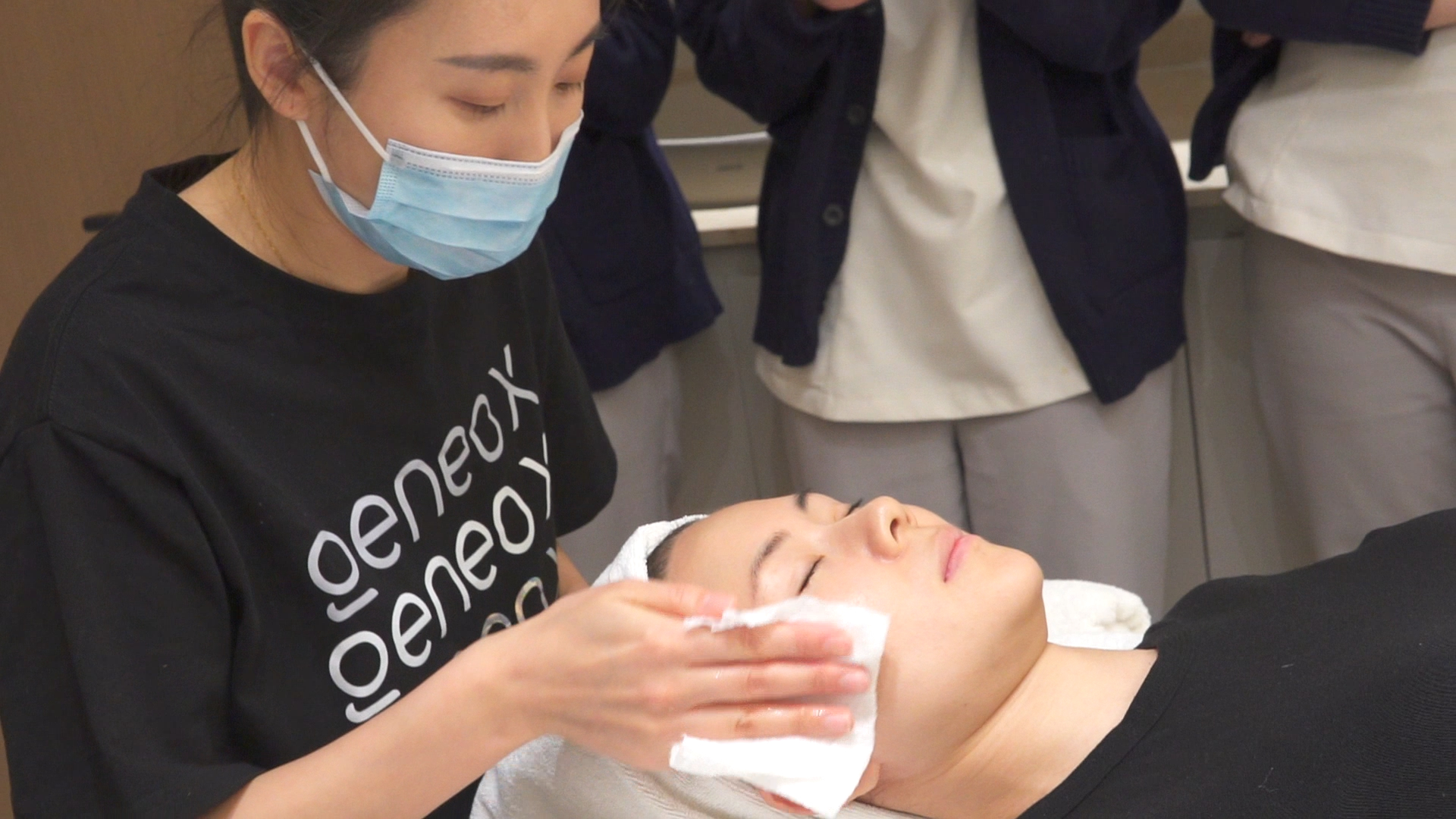 实操演练环节是本次培训的核心,导师以真实模拟诊疗场景为基础,现场演示 GeneoX 仪器的操作流程、手法技巧与细节把控,从术前皮肤检测、氧肤活力弹的精准搭配,到焕氧手具的操作力度、声波技术的参数调节,再到术后护理的标准化流程,每一个步骤都逐一拆解、规范示范。参训医护人员分组实操,导师一对一指导纠错,重点强化仪器操作的精准度与舒适度,确保在临床服务中既能发挥技术的最佳效果,又能为求美者带来沉浸式的五感奢护体验。此外,培训还针对项目联合治疗展开研讨,结合靓范医生现有的光电矩阵、皮肤管理体系,探索 GeneoX 与其他项目的协同搭配方案,实现 1+1>2 的美肤效果。