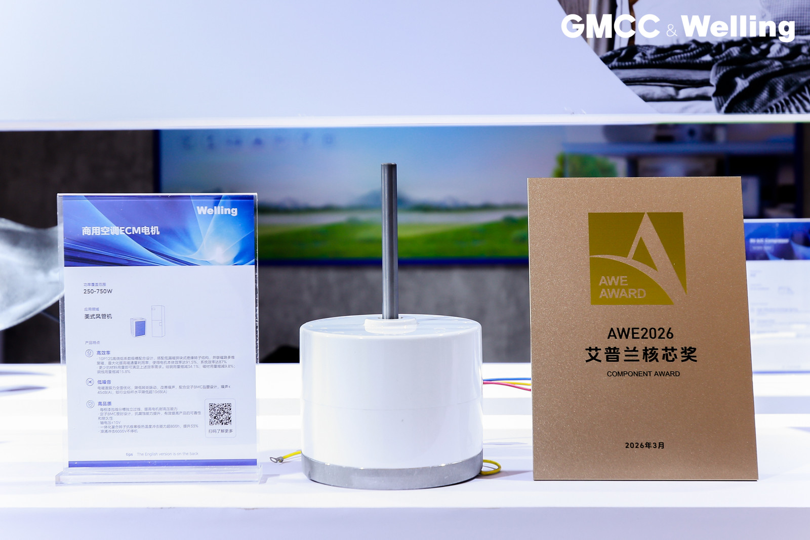 威灵超高效静音可靠性电子换向电机荣获AWE2026“艾普兰核芯奖”