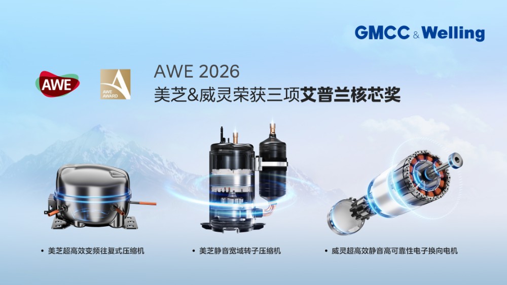 【中国·上海】2026年3月15日,备受关注的家电与消费电子行业年度最高荣誉——AWE 2026“艾普兰奖核芯奖”在上海圆满落下帷幕。全球领先的暖通家电核心部件供应商GMCC美芝、Welling威灵凭借美芝静音宽域转子压缩机、美芝超高效变频往复式压缩机,以及威灵超高效静音高可靠性电子换向电机,成功斩获三项大奖。值得一提的是,这已经是美芝、威灵连续十余载荣获这一荣誉,美芝、威灵在暖通家电领域的技术、研发、制造能力再次得到了行业认可。