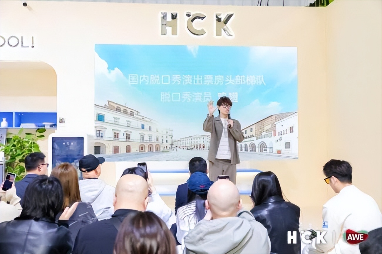 国内脱口秀演出票房头部梯队的人气脱口秀演员“鸡翅”惊喜现身HCK哈士奇,他的线下脱口秀专场一票难求,同时他还是口碑与实力兼具的脱口秀编剧,最近忙于腾讯《主咖和他的朋友们》的编写工作。此次他登陆HCK哈士奇在AWE现场开麦,带来一场充满趣味的生活分享。他将日常生活中的真实感悟转化为幽默爆梗,用轻松的语气,将HCK哈士奇产品的使用方式融入一个个平凡而又捧腹大笑的观察中。这种“在全球四大家电展里听脱口秀”的新奇观感,也让观众在笑声中记住了HCK哈士奇那份懂生活、懂年轻人的品牌内容。