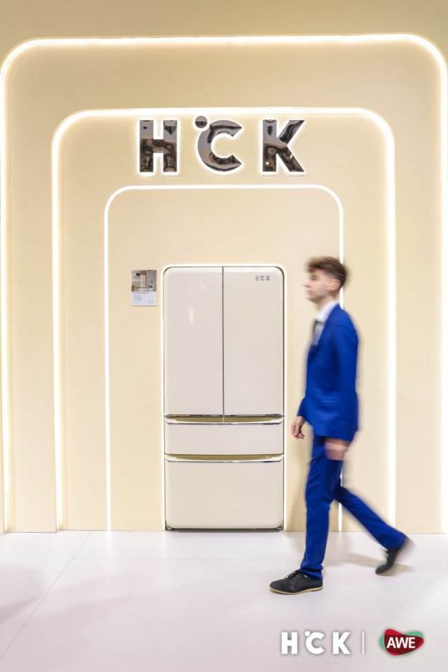 HCK哈士奇作为中国冰吧销售第一品牌,本次在AWE以全新品牌形象亮相,复古奶油白与冰川蓝的色彩交织,让这个源自欧洲的品牌一秒便带领现场观众穿梭到欧洲新贵美学生活的场景里。HCK哈士奇现场不止展出了大家喜爱的圆弧冰吧、复古冰箱、红酒柜等高销量产品,同时还引领观众一起“玩大了”。大品牌升级、大产品全新发布、大功能全领域体验、大品类开发等核心“大”亮点体验,吸引了众多观众驻足流连,当天下午登场的HCK哈士奇全球新品发布会,不仅能品尝打卡全球排名29的庙前冰室出品、观看国内头部票房脱口秀演员鸡翅的演出、学习中国品牌战略咨询行业领航者的分享,更有来自法国美食与艺术生活推广大使、知名演员赵奕欢的现场互动,让HCK哈士奇成为全场瞩目的焦点,欢呼声雀跃不绝。