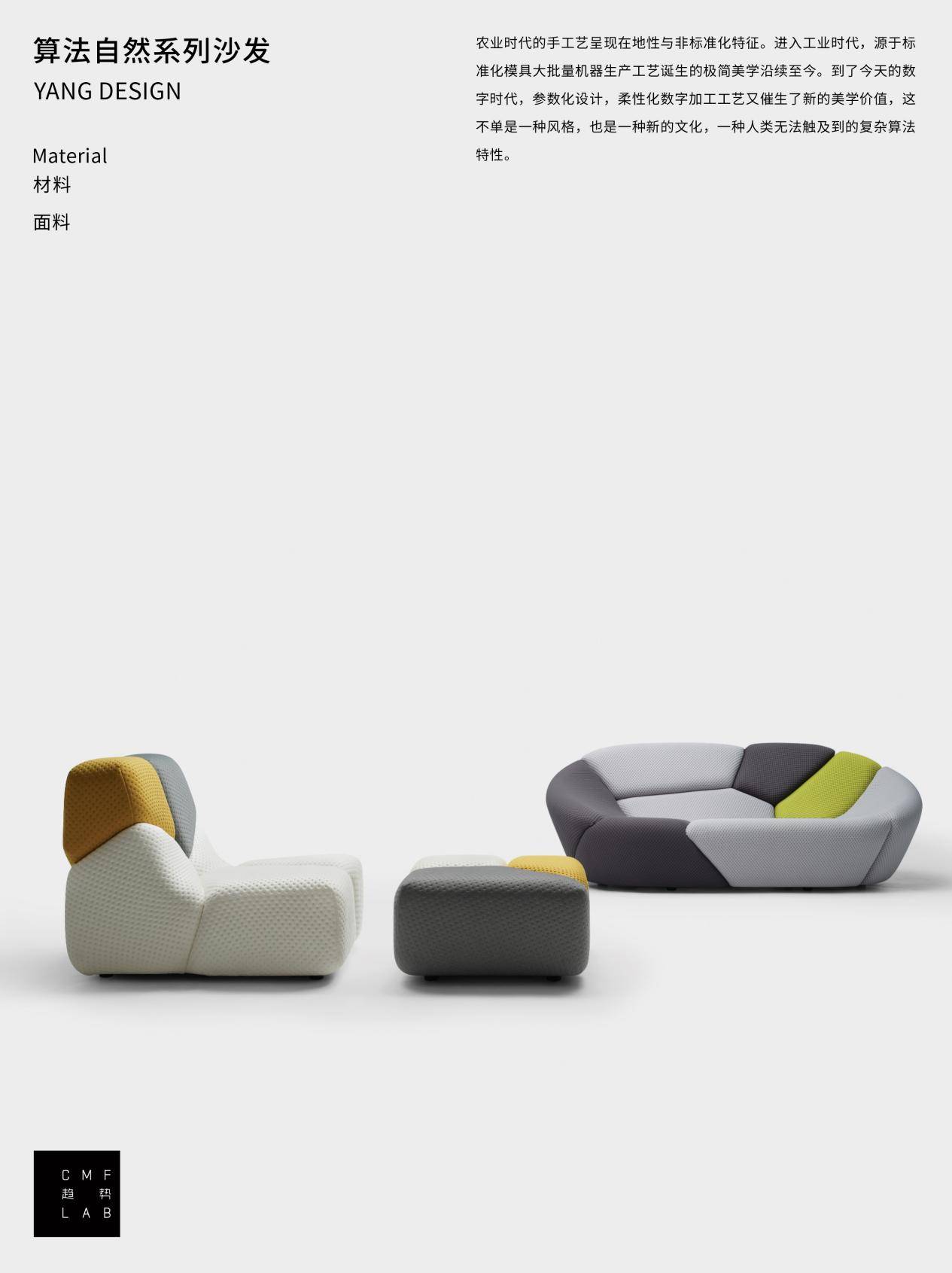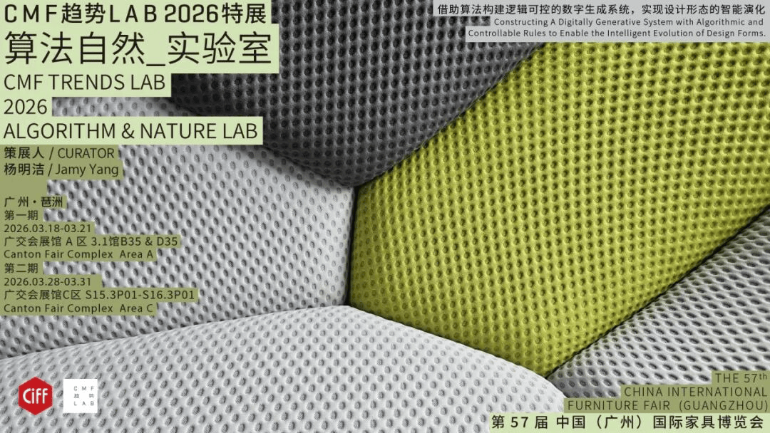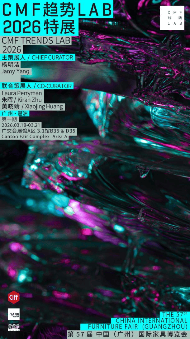 「CMF趋势LAB」由中国家博会(广州)主办,YANG DESIGN 与灵感家共同策划,自 2021 年创立以来,持续深耕材料创新与应用领域,致力于构建一个面向全球语境的 CMF 专业研究与传播平台。