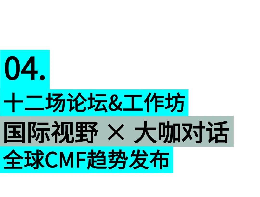 为期六天的论坛与活动,汇聚设计师、材料专家、学者与品牌决策者,从不同视角拆解 CMF 的方法逻辑与实践路径,帮助观众完成从趋势理解到方法应用的完整路径。