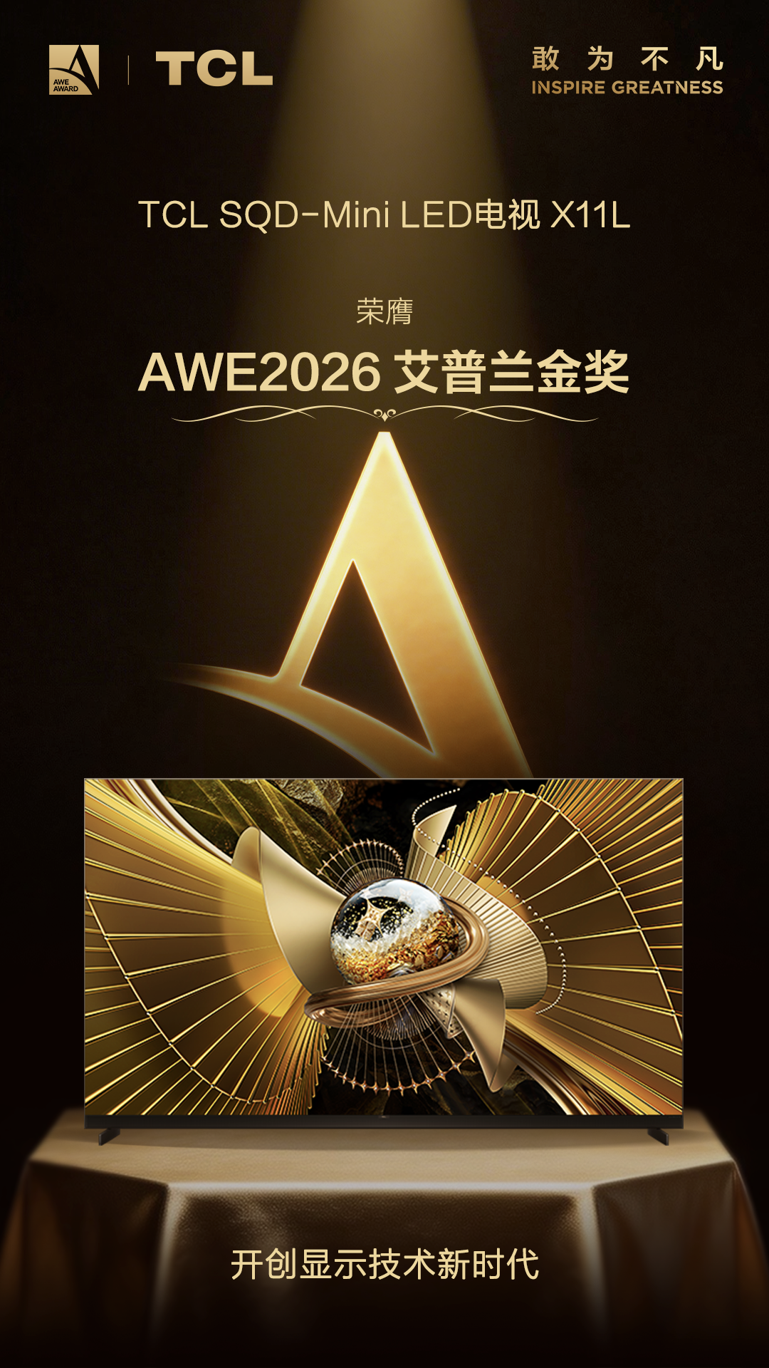 在今年的AWE展会上,电视圈的焦点无疑被TCL牢牢占据——全球首款搭载下一代巅峰级SQD-Mini LED显示技术的旗舰电视X11L一举拿下了本届艾普兰奖金奖,这不仅是行业评审对产品技术创新的最高褒奖,更是对未来技术趋势的预判。过去几年,我们见证了液晶时代的辉煌、OLED的崛起、Mini LED的普及,而今年,SQD-Mini LED的出现,正在为电视画质开启全新的代际革命。