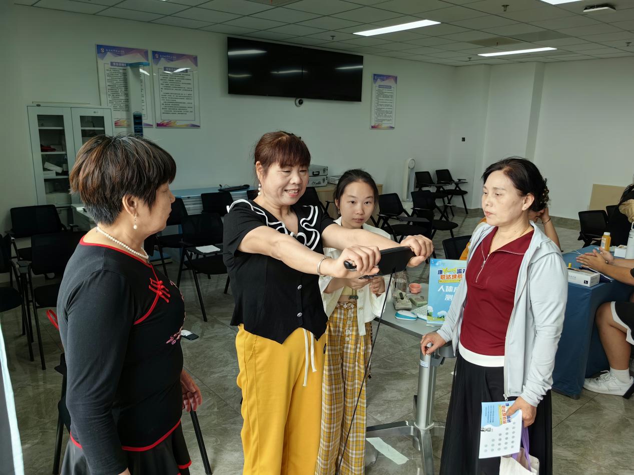 在健康筛查与评估区,生命体征检测、人体成分测评、亚健康评估、心功能测量、骨密度检测等项目有序开展。专业的设备和严谨的检测流程,让参与者深入了解自身健康状况,为科学养生和疾病预防提供了依据。一位参与检测的康怡社区阿姨说:“这个人体成分测评,让我对自己的身体状况有了更清晰的认识,以后会根据老师的指导,加强锻炼。”