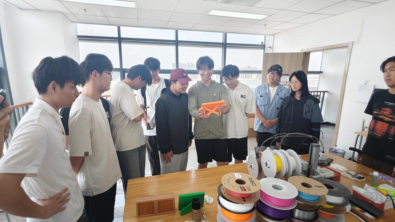 智慧康养展示区展示了运动风险筛查一体机、智能艾灸盒、智能按摩器等一系列先进设备。由学院师生研制开发的居家适老化改造解决方案、智能体相框、3D打印康复辅具更是吸引了众多居民的目光。康养工程学院陆世尧老师介绍:“学院老师和学生一起研发了这款智能体相框,运用3D建模、人工智能技术将失智老人怀旧疗法数字化升级,通过视觉、听觉、触觉多感官联动,我们在合作企业瑞芝康健老年公寓试用,提升认知训练效果显著。”