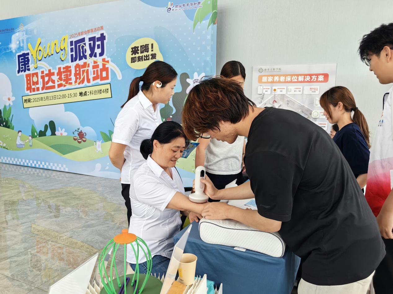 5月13日,南京城市职业学院康养工程学院举办首届“康 Young 派对・职达续航站——传统养生与科技健康碰撞的校园疗愈场”职教周康养市集活动。活动精心设计了健康筛查与评估、中医诊疗与养生体验、智慧康养展示、互动科普四个区域共二十个打卡项目,吸引了众多学校师生员工以及共建单位康怡社区居民的热情参与,为大家带来了一场沉浸式康养体验盛宴。