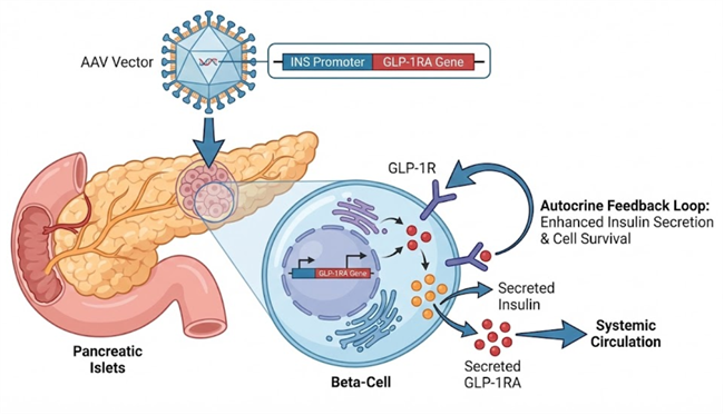 图1 AAV介导GLP-1RA基因在胰岛β细胞中的表达及作用机制示意图