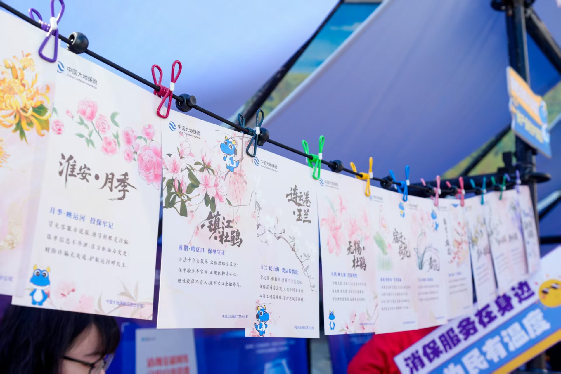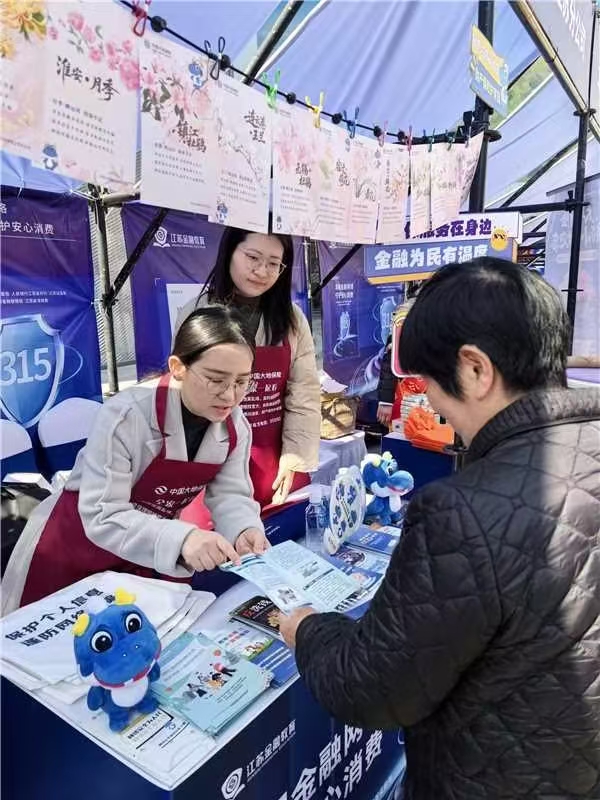 活动现场,江苏分公司创新推出江苏十三市市花版金融风险提示展板,吸引众多市民驻足打卡,以一城一花、一市一策为创意核心,将南京梅花、苏州桂花、无锡杜鹃等各市市花的独特品格意象,与防范车险诈骗、守护个人信息安全、远离非法保险活动等核心金融风险提示深度融合。以花喻理、以文传识,借江苏本土文化载体传递金融安全知识,让江苏韵味与金融消保理念同行共生,切实提升广大消费者的风险防范意识与自我保护能力,牢牢守护百姓“钱袋子”。
