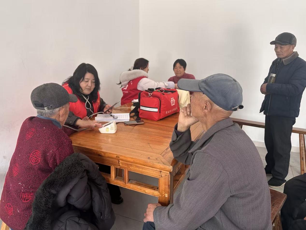 活动现场秩序井然,志愿者们细心引导村民有序等候、登记检查。医务志愿者携带血压计、血糖仪等设备,为村民免费测量血压、血糖,耐心询问身体状况、既往病史与用药情况,细致解读检测数据,针对高血压、糖尿病等常见慢性病,提供科学饮食、合理用药与日常保健指导。志愿者还同步普及健康知识,提醒村民关注慢病管理、养成健康生活习惯,用专业与温情守护群众健康。
