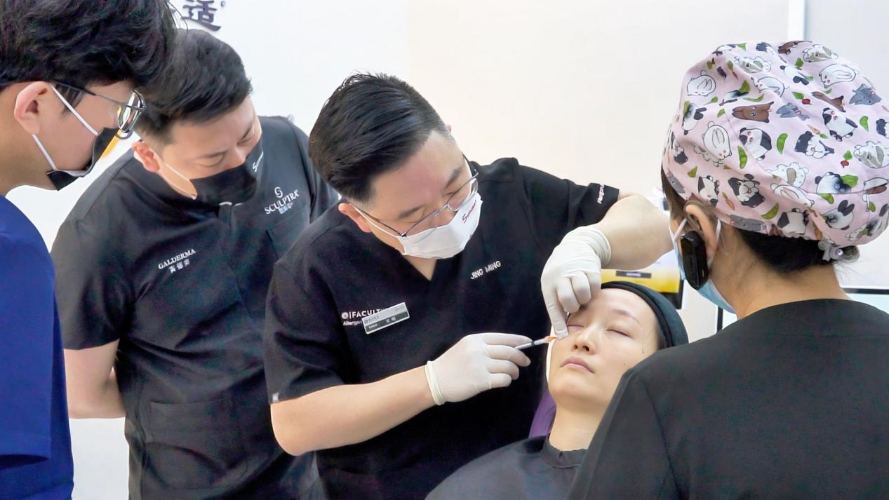 实操演示环节是本次培训的重点的环节。井明院长以模拟实操结合案例复盘的方式,现场演示肤莱美注射全过程,从术前面诊评估、方案设计,到注射手法、层次把控,再到术后护理指导,每一个细节都讲解细致、操作规范。演示过程中,他结合典型临床案例,针对参训人员提出的注射层次把控、剂量精准度、术后恢复等疑问,逐一耐心解答、现场指导,确保大家能够将理论知识转化为实操能力,真正掌握肤莱美临床应用的核心技巧。