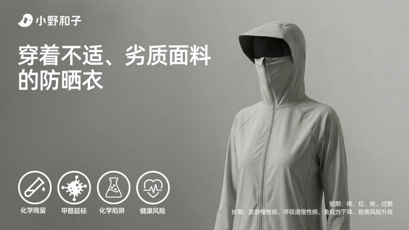 行业调研显示,当前防晒衣市场存在诸多隐患。除了广为人知的防晒指数虚标,面料本身的化学安全性才是真正的“黑盒”。