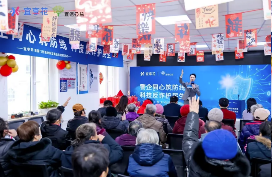 在数字化浪潮深刻改变金融业态的当下,金融安全已成为关乎千家万户切身利益的民生大事。面对金融黑灰产手段的不断翻新,警企协同、科技赋能成为守护群众“钱袋子”的关键之举。2月5日,一场以“警企同心筑防线,科技反诈护民生”为主题的反诈宣传活动在社区火热开展,宜享花携手北京市公安局朝阳分局建外派出所、大北社区警务站及宜信公益基金会,将前沿AI科技系统“Hawkeye”带入社区一线,通过实战经验与技术优势的深度融合,向居民揭开金融诈骗的层层伪装,共同探索构建“警企社协同、全民共参与”的反诈新格局。