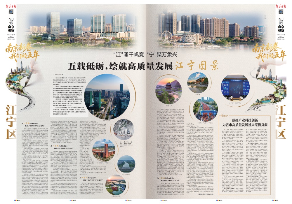 五年砥砺奋进,五年硕果盈枝。看,将军大道旁的产业跃迁正提速,百家湖边的烟火气息正升腾,秦淮新河畔的绿色生机正盎然,居民楼里的议事欢声正热烈……一幕幕鲜活景象交织,勾勒出江宁高质量发展的铿锵态度。