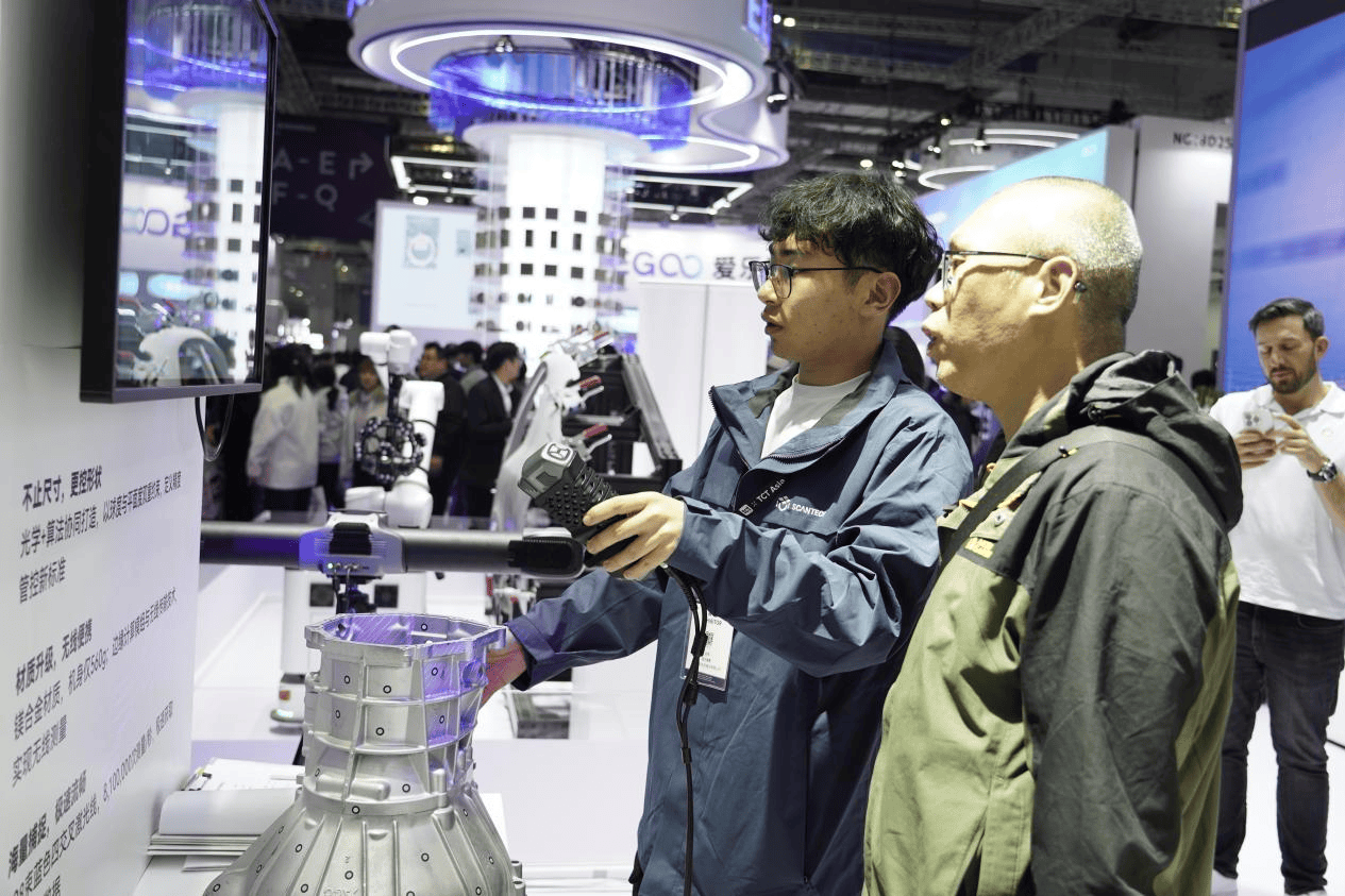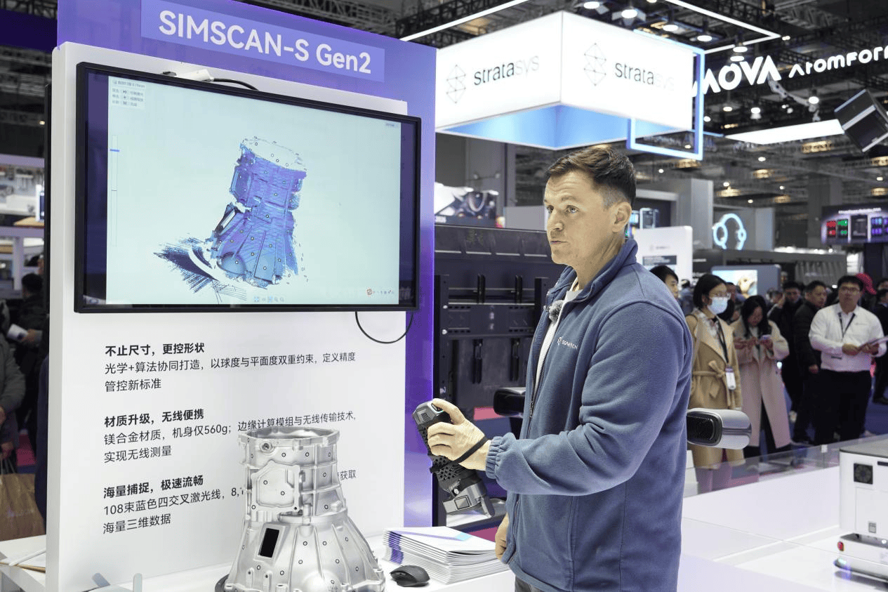 据现场技术人员介绍,该产品在精度控制上实现技术升级,通过强化球度与平面度的双重约束,实现了对形状的精准管控。这意味着工业扫描从传统的尺寸测量,逐步迈入“尺寸+形状”双重管控的“形状时代”。其扫描精度达0.015mm,可满足航空航天、精密制造等领域对极致精度的严苛要求。