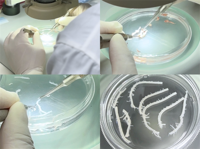 图2 云克隆实验员分离主动脉内皮的操作过程