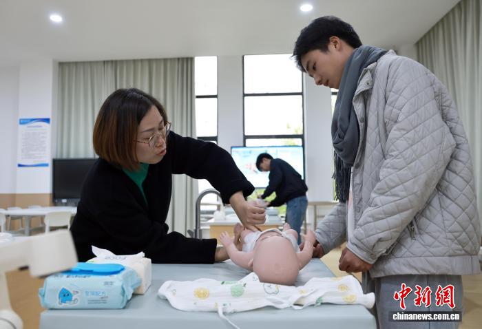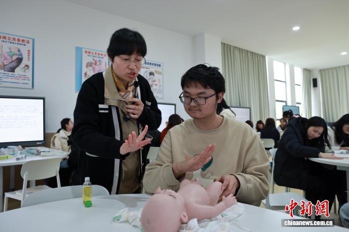 练习抚触、调配奶粉、测量体温……在成都师范学院托幼一体化综合实训教室内,一群“00后”大学生抱着“婴儿”不断练习“带娃”技能。这些“婴儿”虽为仿真教具,但学生们的一招一式,却透露出专业与严谨。