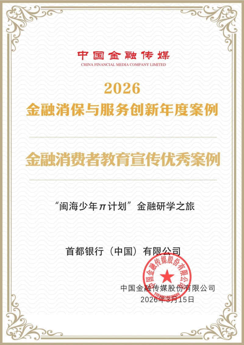 近日,中国金融传媒发布“2026金融消保与服务创新优秀案例”名单,首都银行(中国)凭借“闽海少年π计划”金融研学之旅,从近400个案例中脱颖而出,荣获2026金融消费者教育宣传优秀案例称号。这一称号标志着首都银行(中国)在践行“金融为民”理念、深耕乡村公益的道路上又迈出了坚实而创新的步伐。