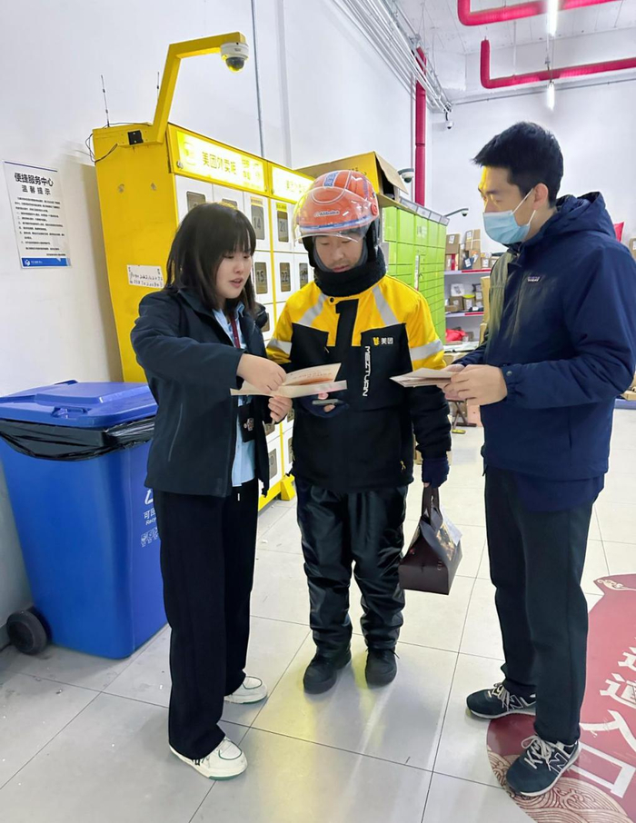 聚焦“两司两员”等新型就业群体中的外卖员,开展“街头宣讲+一对一咨询”的便民服务。利用外卖骑手等餐时间,重点针对陌生链接“钓鱼”、电信诈骗、非法网贷等高发骗局和诈骗案例进行风险提示,用通俗易懂的语言讲述防范应对策略,向外卖员宣传依法维权渠道和电话,普及金融安全知识。