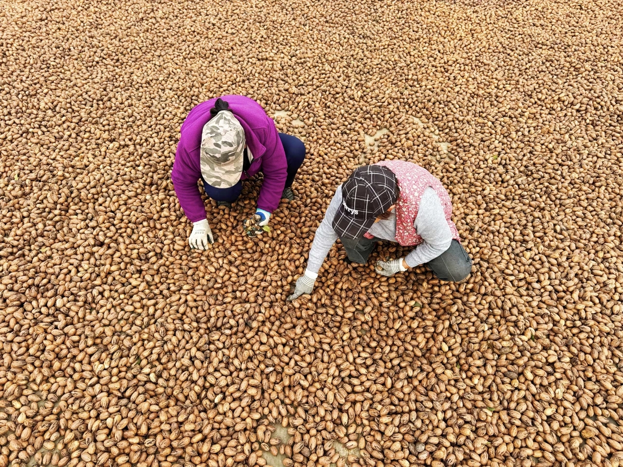如今,这颗“种子”已长成参天大树,化作当地的支柱富民产业。从最初的5棵“母树”,到如今全镇6700亩的规模化种植,刘老庄走出了一条“红色为基、绿色赋能”的乡村振兴新路。在江苏百木源生态农业有限公司的基地里,现代化的摇果机高效作业,将原本需要人海战术的采收变得轻松便捷;在香园农庄,饱满的碧根果供不应求,成为健身圈、养生圈的“香饽饽”。