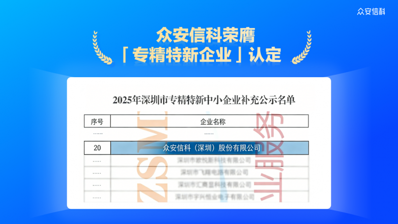 近日,深圳市专精特新企业名单正式公示,众安信科(深圳)股份有限公司(以下简称“众安信科”)凭借在企业级AI应用解决方案领域的持续深耕与技术创新,成功入选。