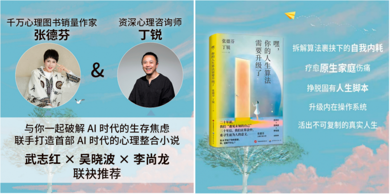 当 AI 技术深度渗透日常生活,算法逐渐定义人生选择,当代人该如何挣脱标准化的生存桎梏,重拾生而为人的真实与鲜活?知名作家、灵动生活创始人张德芬与资深心理咨询师丁锐联手,带来首部 AI 时代的内在成长整合小说《嘿,你的人生算法需要升级了》,为身处算法浪潮中的人们奉上一场关于自我认知觉醒、人生重构的心理成长盛宴。据悉,本书线下新书签售会将于2026 年 3 月 22 日下午 14:00-16:00在深圳好奇象图书馆温情启幕,两位创作者将以书为媒,与大众深度对话,共同探寻 AI 时代的人生本真答案。