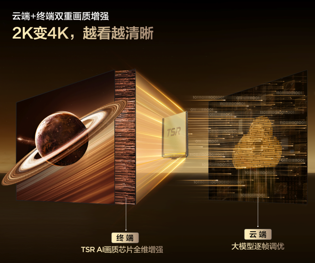 除了画质拉满,Q9M Pro的其他配置也可以说是诚意十足。支持4K 150Hz,玩 FPS、动作游戏完全无拖影,画面丝滑到飞起;最新的TSR AI光色同控芯片,采用云端+终端双重优化,哪怕是普通的在线视频资源,也能逐帧优化成4K高清效果,彻底告别糊片,当然,TCL家100%好评的灵控系统3.0也搭载到了Q9M Pro上,让观影过程更加方便舒心,老人小孩都可以“0门槛”使用。