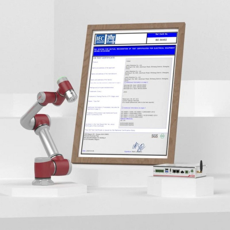 近日,节卡机器人正式获得IEC 60601医疗安规认证,JAKA S系列机器人(S5/S7/S12)及MiniCab控制柜通过国际电工委员会医用电气设备安全标准的严格评估,获颁 SGS 国家认证机构 CB 测试证书(证书号:BE-56482)。这一国际权威认证,标志着节卡机器人的安全与可靠性已达到全球医疗设备严苛标准,正式迈入符合国际规范的医疗设备行列,可为医疗场景用户提供合规、安全、可直接落地的协作机器人解决方案,也为节卡机器人拓展全球医疗市场、推动行业医疗自动化高质量发展奠定坚实基础。
